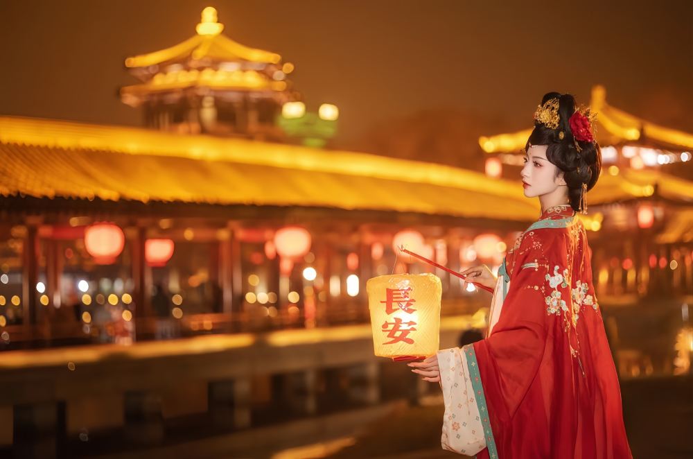 This is a Tang Dynasty Hanfu photographed at the Great Tang All Day Mall.