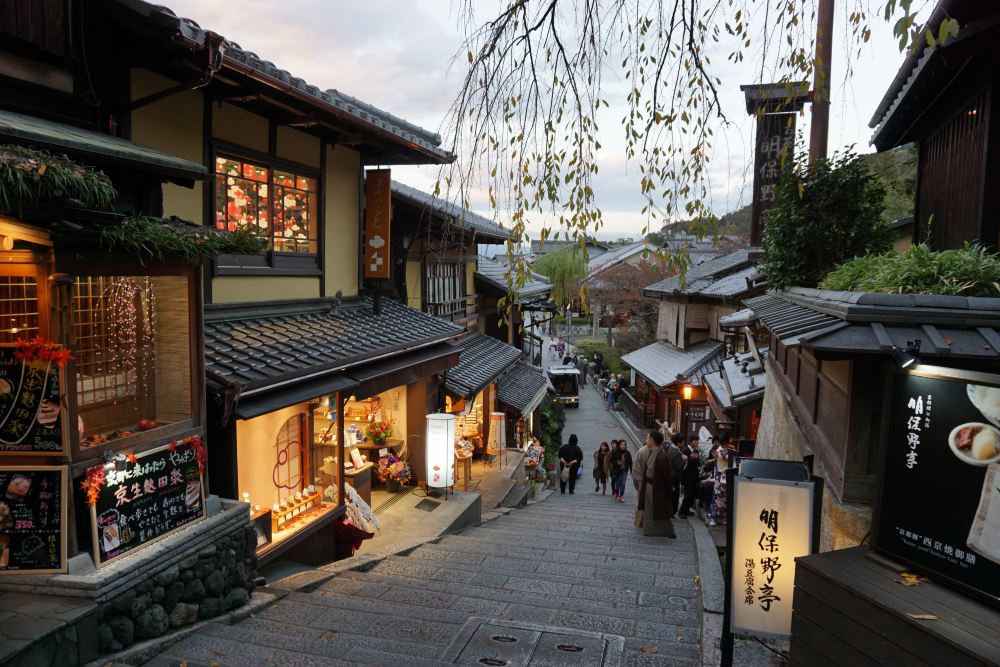 ▲ This is a slope exuding the charm of Kyoto, composed of Ninen-zaka and Sannen-zaka, leading directly from Kiyomizu-dera Temple. Along the way, you'll find traditional machiya buildings with red lattice and mushi-kago windows, as well as Japanese snack shops and quaint merchandise stores like the "Donguri Republic" featuring Studio Ghibli merchandise. It's a great place to buy souvenirs and enjoy the pleasure of strolling in a kimono.