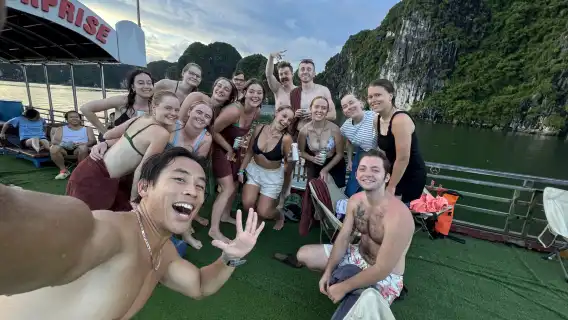 Enjoy a freshly prepared Vietnamese lunch, served in a scenic setting at the border of Lan Ha Bay & Ha Long Bay.