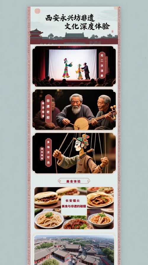 HomeXi'anExperiencesIntangible Cultural Heritage & Cuisine - YongxingFang Guanzhong Building Intangible Cultural Heritage Experience (Huaxian Shadow Puppetry + Huayin Laoqiang + Qinqiang Opera + Puppet Show) - Free Food Exploration at YongxingFang - Small East Gate Market on the City Wall