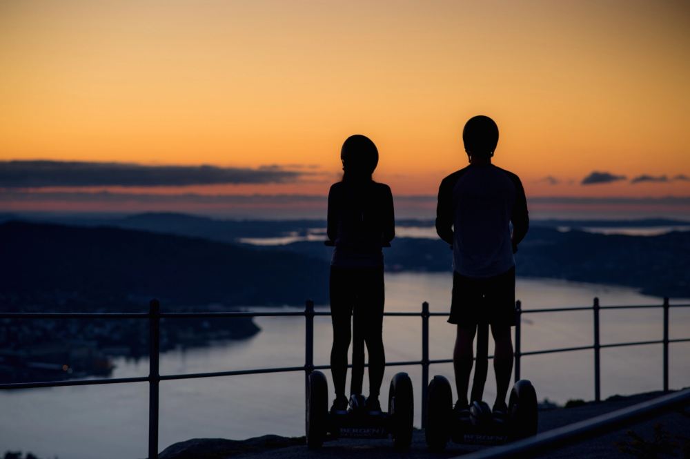 The journey begins at the Bergen Segway venue, just a few steps from the city center. Here, there's a spacious indoor training area for Segway where everyone can learn the basic skills before starting the adventure. Once everyone is ready, you'll take a short tour through the city center to get a feel for the atmosphere. Then, you'll gain a deeper understanding of the Segway and prepare for the uphill climb. Starting from the city center, you'll steadily ascend to the Fløyen Mountain viewpoint. Along the way, you'll pass multiple scenic spots and photo opportunities. If you're up for it, the journey continues all the way to the mountain peak at 320m (1,050ft) above sea level, where you'll witness the city lights from Bergen's highest vantage point. This unique experience is unlike anything you've tried before, so get ready to enjoy the fun of Segway!
