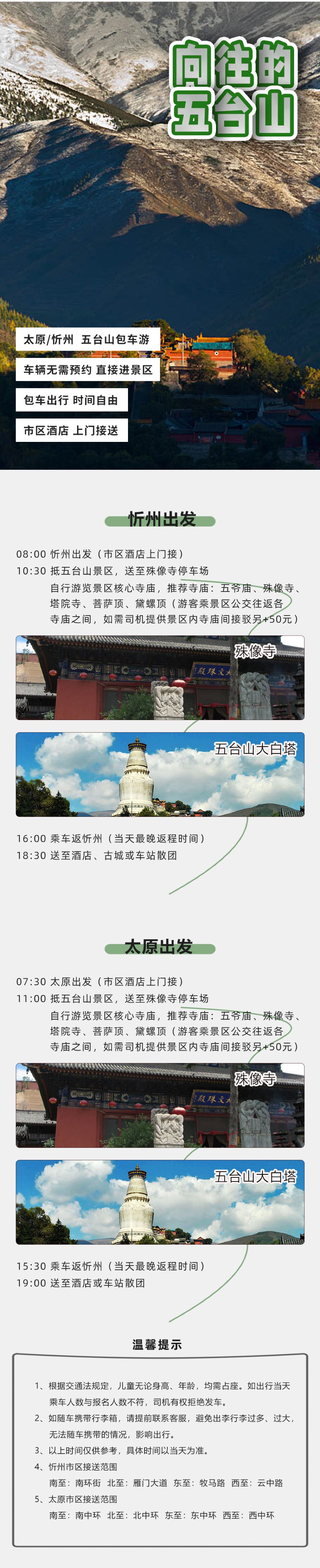 1-day tour to Wutai Mountain and Wuye Temple in Shanxi│Vehicle type options available│Expressway access throughout│Direct to the attraction