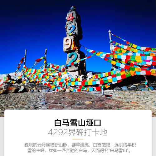 Check in at the two major viewing platforms of Meili Snow Mountain National Park (Feilai Monastery + Wunongding), passing by the Baima Snow Mountain viewing platform, the Great Bend, He Long Bridge, and the Napahai viewing platform.