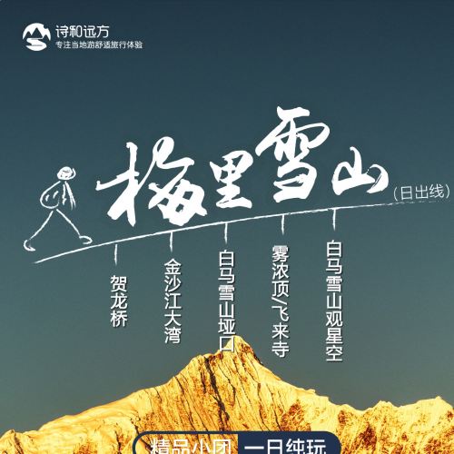 Choose from three package options: 8-person small group, 15-person minibus group, or private tour. Depart in the early morning to witness the golden sunrise over Meili Snow Mountain National Park, admire the vast starry sky, and embark on a journey chasing the light.