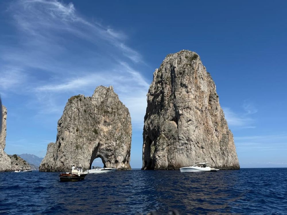 Experience a comfortable trip to Capri and relax. You'll have a traditional island cruise with an experienced captain accompanying you throughout to fulfill your requests. This private cruise will take you to explore every corner of the island, including hidden spots off the beaten path. You can stop to swim in the crystal-clear waters, away from the crowds and noise of other boats, and discover tranquil bays and coves. Visit the world-famous Blue Grotto, marvel at its magical blue waters, and capture unforgettable photos in front of the iconic Faraglioni rocks. During the cruise, you'll enjoy various refreshments on board, including cool mineral water, limoncello, soft drinks, and a bottle of Prosecco, making your experience even more special. Whether you want to relax, explore nature, or take stunning photos, this cruise perfectly balances luxury and adventure, turning your Capri trip into an unforgettable memory.