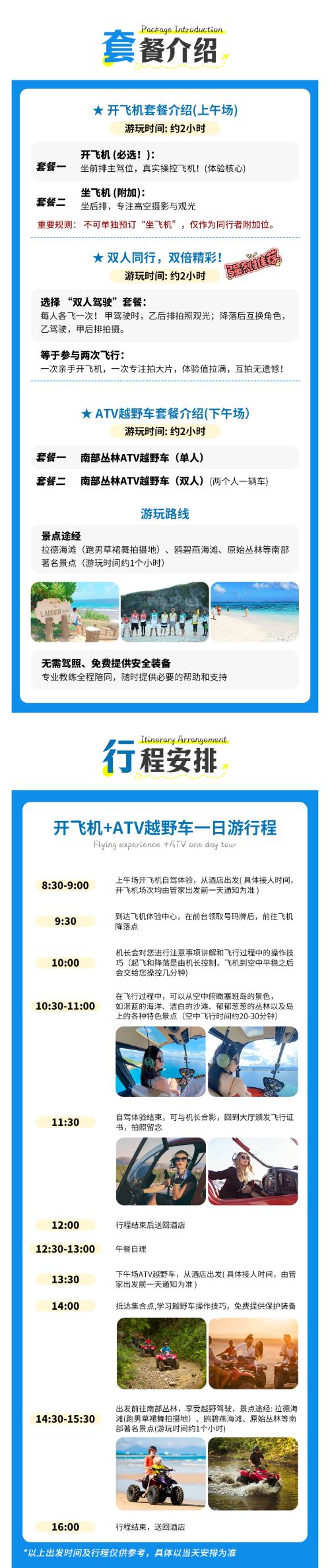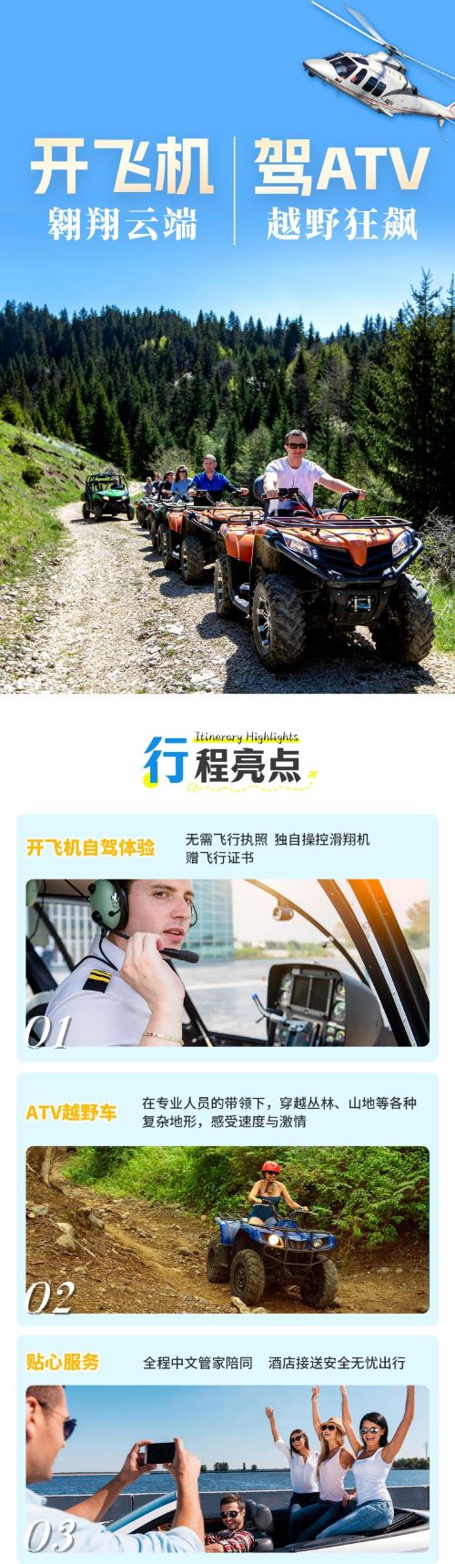 3. Includes round-trip hotel transfers, self-piloted airplane flights or self-driven ATV off-road adventures through the southern jungle.