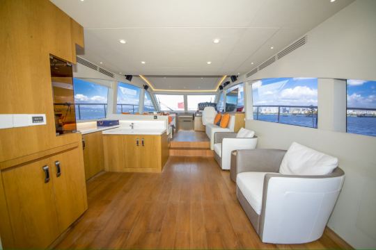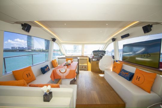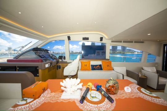 The ship features a luxurious and spacious karaoke room with dual large LCD screens and a premium sound system, capable of reaching speeds up to 35 knots. Perfect for family/friend gatherings, corporate team-building events, and sea DJ parties.