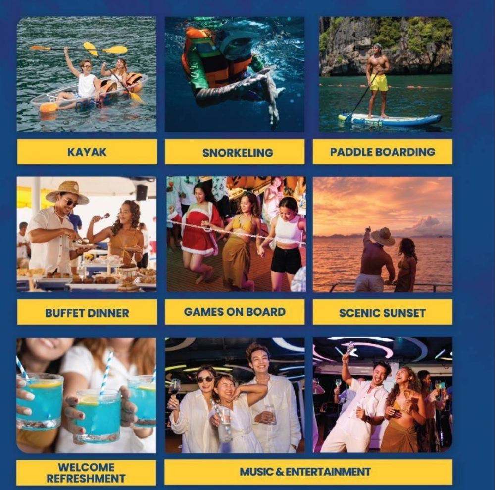 Inclusions: Free hotel transfer in Ao Nang area, disposable mouthpiece, buffet dinner, welcome drink, English-speaking guide
