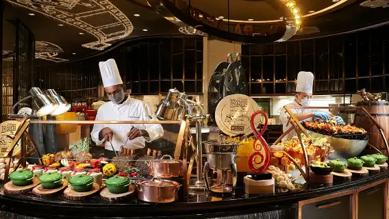 The "Xinghui Restaurant" is a well-deserved, star-studded feast stage, with delicious global seafood, international specialties, authentic cuisine and exquisite desserts, showing its star charm every day and presenting you with a gorgeous and rich buffet experience.