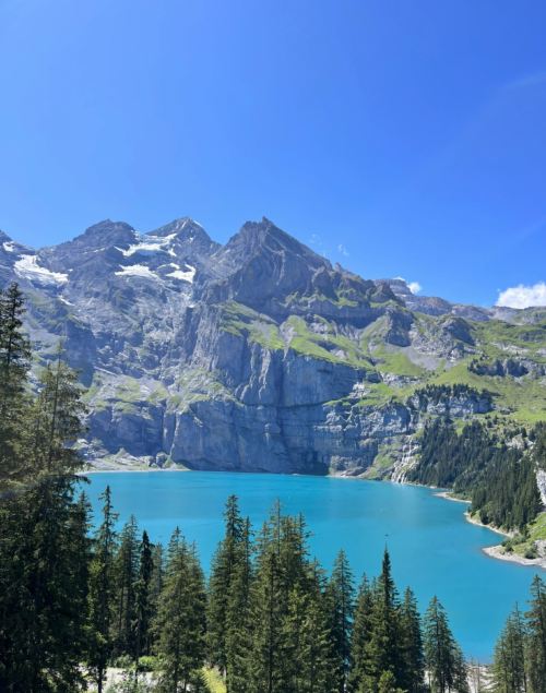 ▲ Oeschinensee is located in the Bernese Highlands of Switzerland, a sparkling gem in the Alps. The lake is formed by glacial meltwater, displaying mesmerizing shades of turquoise or emerald, resembling a fairyland. Surrounded by snow-capped mountains and adorned with cedar trees, the scenery is breathtaking. It's an ideal destination for hiking, as well as swimming and boating in summer, while winter offers ice hiking and fishing. Easily accessible by cable car, it's a perfect choice for immersing in nature and enjoying outdoor adventures.