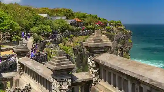 Bali's iconic sea temple perched on a rock formation with stunning ocean views.