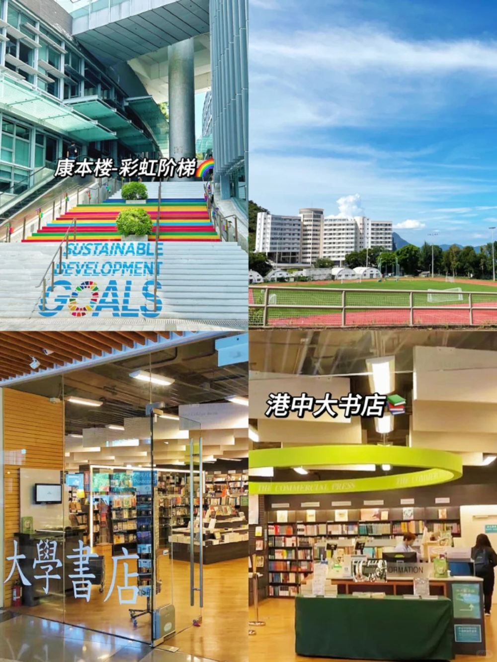 ▲ Check-in spot, Harmony of Man and Nature: Take Campus Bus No. 4 to New Asia College Station, a must-visit scenic spot! Highly recommended to visit on sunny days to experience the stunning sky mirror effect! Rainbow Staircase: A colorful stairway in Yasumoto International Academic Park, one of the iconic photo spots. CUHK Bookstore: The library requires a student ID for entry, so head to The Chinese University of Hong Kong (CUHK) bookstore instead. Take the escalator to the 1st floor of Yasumoto International Academic Park, where you can buy souvenirs like tote bags and fountain pens. Chung Chi Arch/University Avenue: Walk along University Avenue to see the CUHK emblem. The Chung Chi Arch is right next to the library and the Art Museum. Climate Change Museum: Also located on the 4th floor near the Rainbow Staircase. A quick 20-minute visit, great for kids to learn about climate knowledge.
