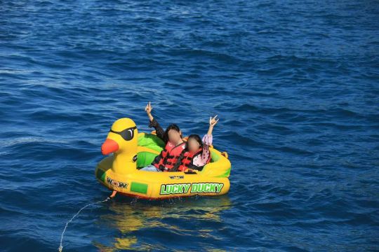 Package includes: Fishing rod and bait, floating mat, snorkeling gear (mouthpiece not included), water slide, life jackets and life rings, insurance