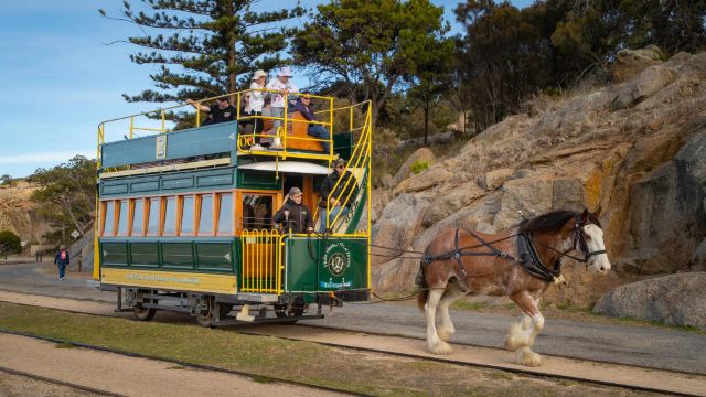 Next, head to the beautiful coastal town of Victor Harbor, where you can choose to walk along the 630-meter wooden boardwalk to Granite Island to admire the wave-carved rocks. Alternatively, you can opt for a paid ride on the historic horse-drawn tram to Granite Island ($15 per person). As the name suggests, the tram is pulled by strong horses and features a traditional double-decker design, offering travelers a leisurely tour around the island.