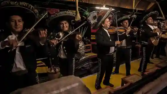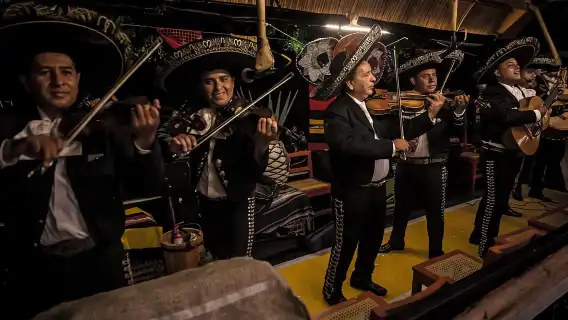 Experience Mexican culture with music, dancing, and traditional food in Xoximilco.