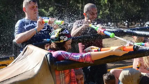 On the pirate boat, there's a foam party, music, and endless fun—and meals are included!