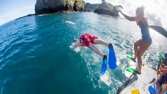 Immerse yourself in the sub tropical waters as we snorkel seeing local fish, stingrays and collecting sea food to taste & share on our cruise home