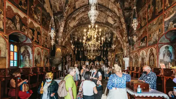 Enjoy 2 stops during the day — Panormitis Monastery and Symi Town