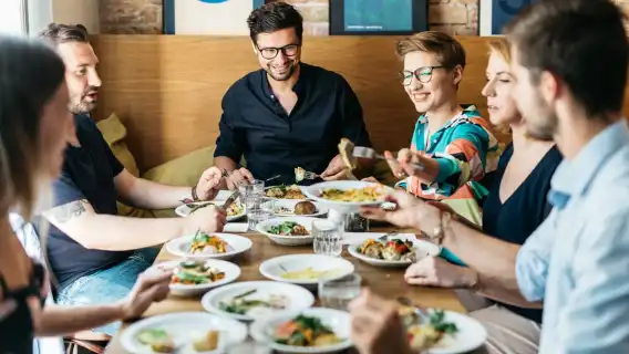 Go to 4-6 carefully selected establishments to eat the equivalent of a full meal