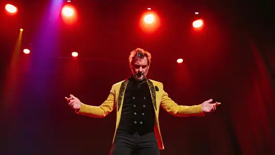 Appreciate the vibrant red outfits of the flamenco dancers upon the stage