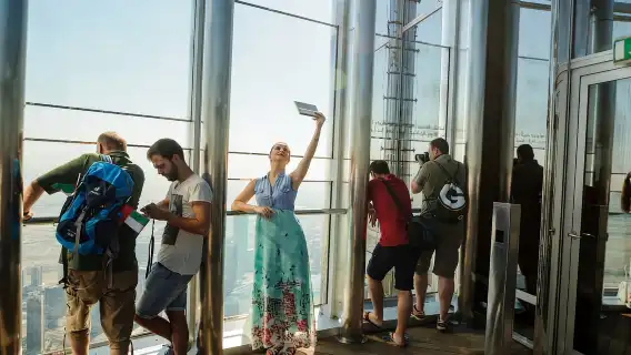 Feast your eyes on the iconic Dubai skyline from the world's tallest skyscraper