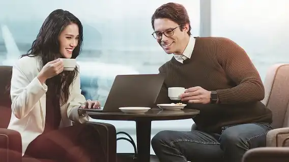 Get some work done or connect with friends using the Wi-Fi and charging stations
