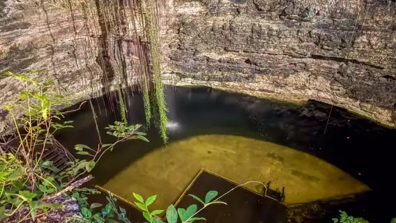 Experience the spiritual beauty of a sacred cenote at night