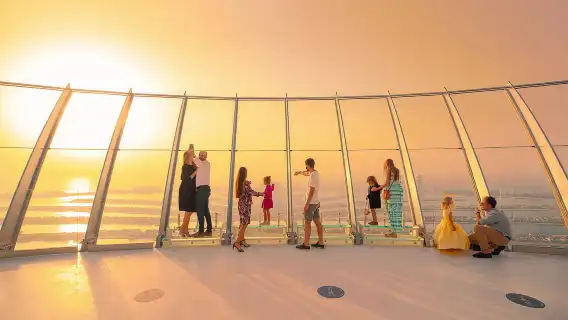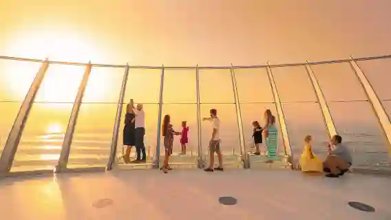 Feel the excitement as you ride in an elevator up to the top of the Palm Tower