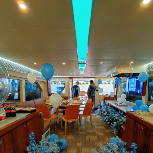 Additional customizable paid services: Balloon decorations, lighting arrangements, yacht DJ, violin performance, seafood feast, Chinese/Western cuisine, etc. Business receptions, birthday parties, proposal dinners (specific fees based on actual consumption; you may book the yacht first and confirm customization needs later).