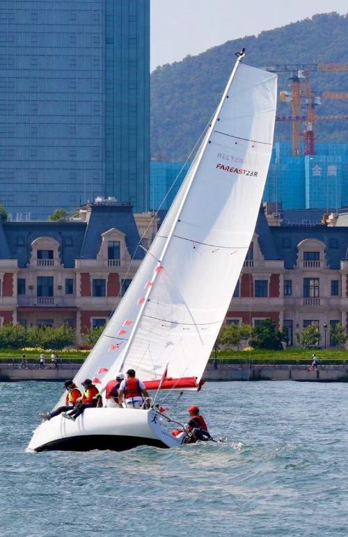Dalian Sailing Boat Tour: Private 23ft Sports Sailing Boat Cruise at Dalian Donggang + Fruits & Drinks + Sailing Experience + Seagull Feeding