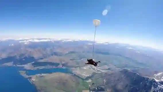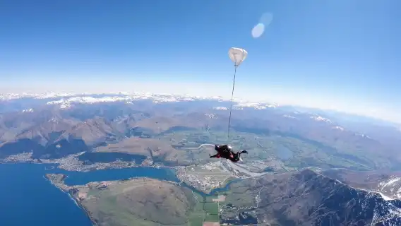 Queenstown tandem skydiving offers three altitude options, with free fall lasting 25–60 seconds at speeds up to 200 km/h, followed by a peaceful canopy ride to enjoy the scenery.