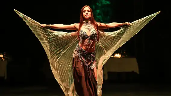 Experience a dinner show with singers, aerial acrobats, and dancers