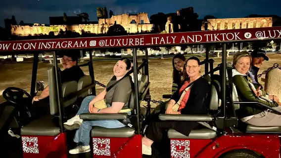 Discover Rome at night as iconic sights glow on a scenic golf cart journey.