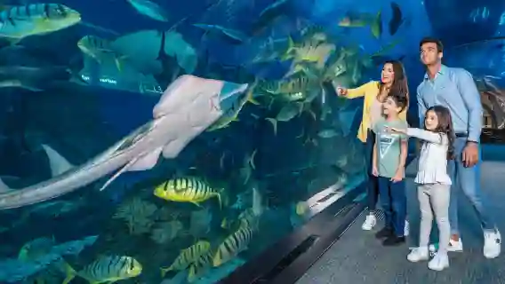 Explore the Dubai Aquarium & Underwater Zoo with thousands of aquatic creatures.
