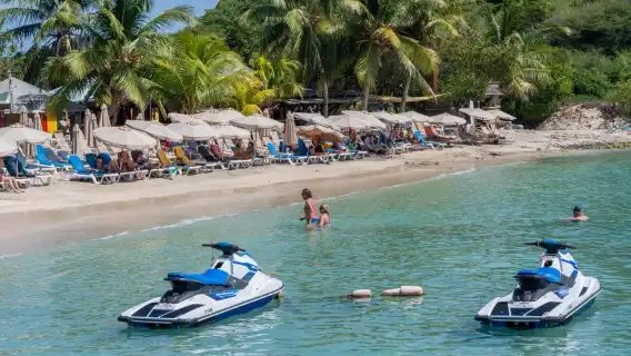 Relax on Cockleshell Beach and enjoy views of the Atlantic and Caribbean