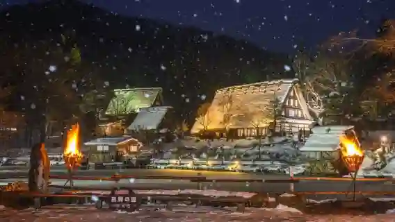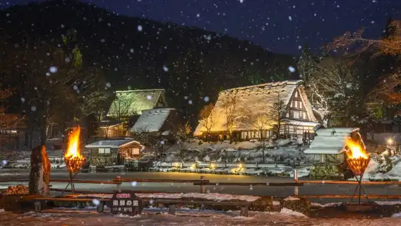 In the winter twilight, the World Heritage Site Gassho-zukuri houses transform into fairytale snow houses, and the lighting ceremony is like a dream, a romantic moment you must see in your lifetime.