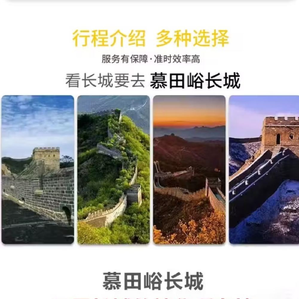 Mutianyu Great Wall, located in Mutianyu Village, Bohai Town, Huairou District, Beijing, is 73 km from downtown Beijing and enjoys the reputation of "the most spectacular section of the Great Wall." Stretching 5,400 meters, it is the longest section of the Great Wall in China and one of Beijing's sixteen scenic attractions. Built in 1368 during the Hongwu reign of the Ming Dynasty by General Xu Da under Emperor Zhu Yuanzhang on the ruins of the Northern Qi Dynasty's Great Wall, Mutianyu Great Wall represents the finest essence of the Ming Dynasty's Great Wall. This section connects Gubeikou to the east and Juyong Pass to the west, serving as a crucial military stronghold defending the capital throughout history. It features notable landmarks such as Zhenguan Tower, Dajiao Tower, and Yingfei Daoyang, with well-preserved walls that vividly showcase the ancient charm of the Great Wall, holding profound historical and cultural significance. In 1987, Mutianyu Great Wall was inscribed on the UNESCO World Heritage List. In 2011, it was rated as a AAAAA-level tourist attraction by the China National Tourism Administration.